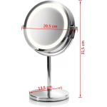 De Medisana CM 840 staat stevig op een stabiele voet en kan dankzij de draaibare spiegel met 2 vlakken eenvoudig aangepast worden aan de gewenste positie. Je kunt kiezen tussen het normale spiegelvlak en de 5x vergroting voor een gedetailleerdere kijk. De hoogwaardige verchroomde behuizing geeft de spiegel een luxe uitstraling. Met een afmeting van ca. 20,5 x 13,5 x 31,5 cm en een gewicht van slechts ca. 950 g is deze spiegel ook nog eens zeer handig mee te nemen en overal te plaatsen waar jij dat wilt.