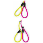 Deze sliplijn is dé ideale combinatie van een hondenriem en een geïntegreerde hondenhalsband. Gemaakt van duurzaam polyamide, biedt deze trainingslijn optimale stevigheid en flexibiliteit. Met de traploos verstelbare halsband en de leren stop kun je de lijn gemakkelijk aanpassen aan de grootte van je hond, terwijl het voorkomt dat de halsband onbedoeld opent. Dankzij het eenvoudige design kun je de halsband gemakkelijk over de kop van je hond schuiven, zonder gedoe met sluitingen. De trainingslijn is weerbestendig en kan tegen alle weersomstandigheden, terwijl vuil eenvoudig verwijderd kan worden. In een opvallende neon roze kleur, is deze trainingslijn zowel praktisch als trendy.