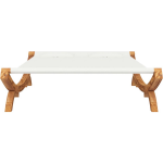 Het liggedeelte van het bed is gemaakt van een gemakkelijk schoon te maken stof, zodat je altijd kunt genieten van een fris en schoon ligoppervlak. De crèmekleurige stof straalt een gevoel van luxe uit en past perfect bij elke tuininrichting. Het bed wordt geleverd met een comfortabel kussen voor extra ontspanning.