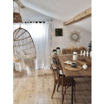 Voeg een vleugje elegantie toe aan je interieur met de moderne beige hangstoel inclusief kussens. Deze gevlochten mand is perfect geschikt voor elk type interieur en benadrukt het gezellige en ontspannen karakter van elke kamer. Met zijn charmante boho-look en zachte, waterbestendige kussens creëert deze hangstoel een onbezorgd vakantiegevoel, waardoor elk moment op de veranda, het balkon of in de slaapkamer een heerlijk avontuur wordt.