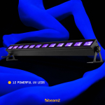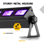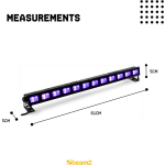 Met de Beamz BUV123 haal je een krachtige blacklight led-bar in huis. Deze bar is uitgerust met 12 LED's van elk 3 watt. Het gebruiksgemak is optimaal, aangezien er geen controller nodig is om deze lamp te bedienen. Daarnaast heeft de BUV123 een brede lichtbundel van maar liefst 120 graden.