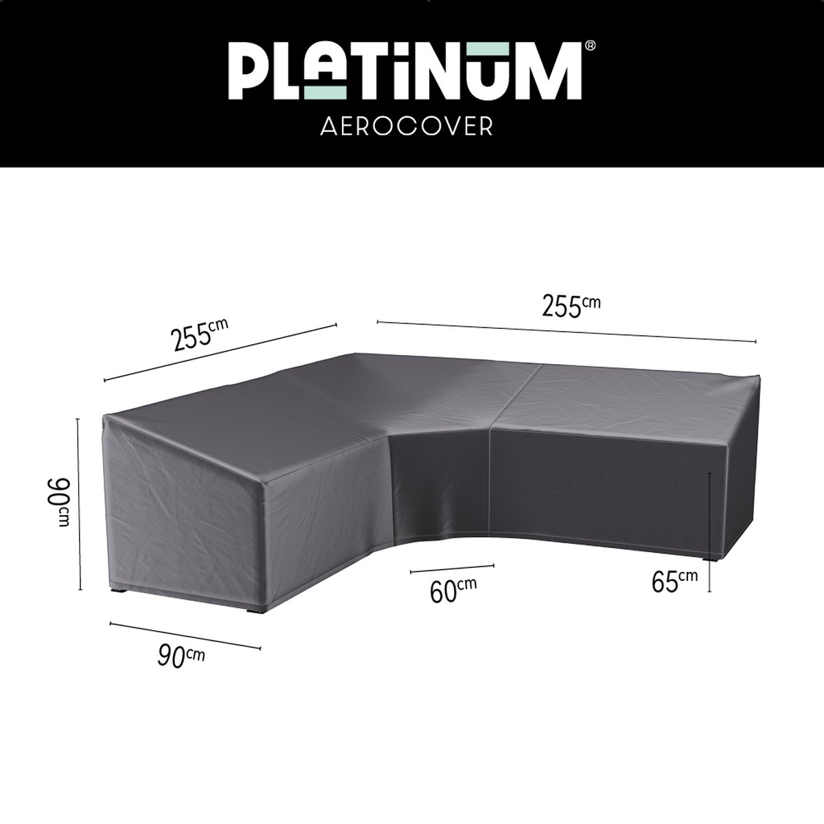 De Platinum AeroCover loungebankhoes L-vorm Trapezium (255x255x90xH65/90cm) biedt betrouwbare bescherming voor L-vormige loungebanken met een grote hoek of trapeze hoek en een hoge rug van 255x255x90xH65/90cm. Het ademende membraan helpt vocht naar buiten te transporteren en houdt tegelijkertijd vuil, stof en regen van buitenaf tegen. Dit is erg belangrijk om schimmelvorming op je loungebank tegen te gaan en de levensduur ervan te verlengen.