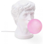 Laat je verrassen door de unieke en surrealistische uitstraling van de LED deco lamp Wonder Times. Deze lamp toont een witte buste, gemaakt van kunsthars, die een totaal onbekend moment uit oude tijden ervaart: een opgeblazen kauwgom.