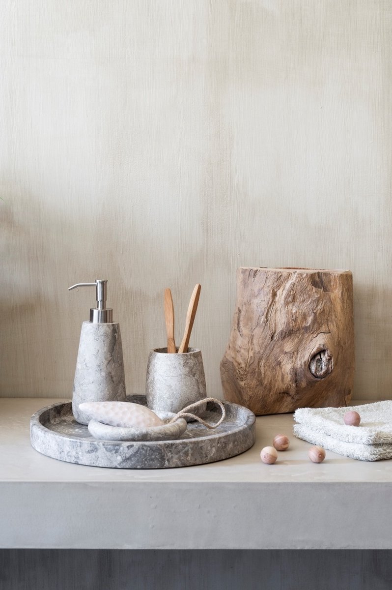 Gemaakt van marmer en met een afmeting van 7.5 x 20.5 cm, is deze zeepdispenser niet alleen functioneel, maar ook een lust voor het oog. Het pompje is bovendien los verkrijgbaar, wat zorgt voor extra gebruiksgemak. Vul de dispenser eenvoudig met je favoriete vloeibare zeep en geniet van een luxueuze handwaservaring.