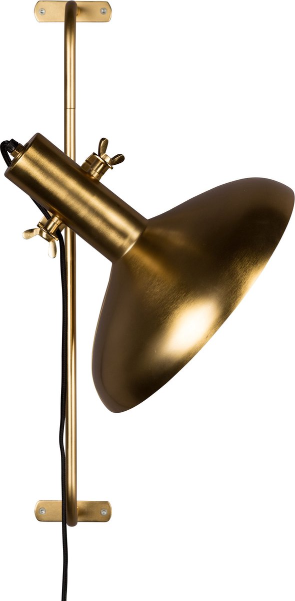 Verlicht je interieur met de warme herinnering aan IndiaDe Dutchbone Karish wandlamp is een prachtige vintage lamp die het resultaat is van een vondst in India door het Dutchbone design team. Het messing afwerking van deze lamp is een eerbetoon aan de bekende messing industrie van Moradabad, waar de lamp wordt geproduceerd. Met zijn grote lampenkap, die in hoogte verstelbaar en kantelbaar is, kan de Karish wandlamp elk donker... lees meer over dit product