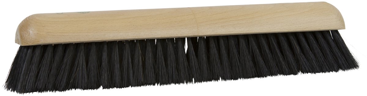 Luva houten kamerveger met zwart kunsthaar, 29 cm breed. Geschikt voor het verwijderen van droog, fijn vuil op gladde oppervlakken.