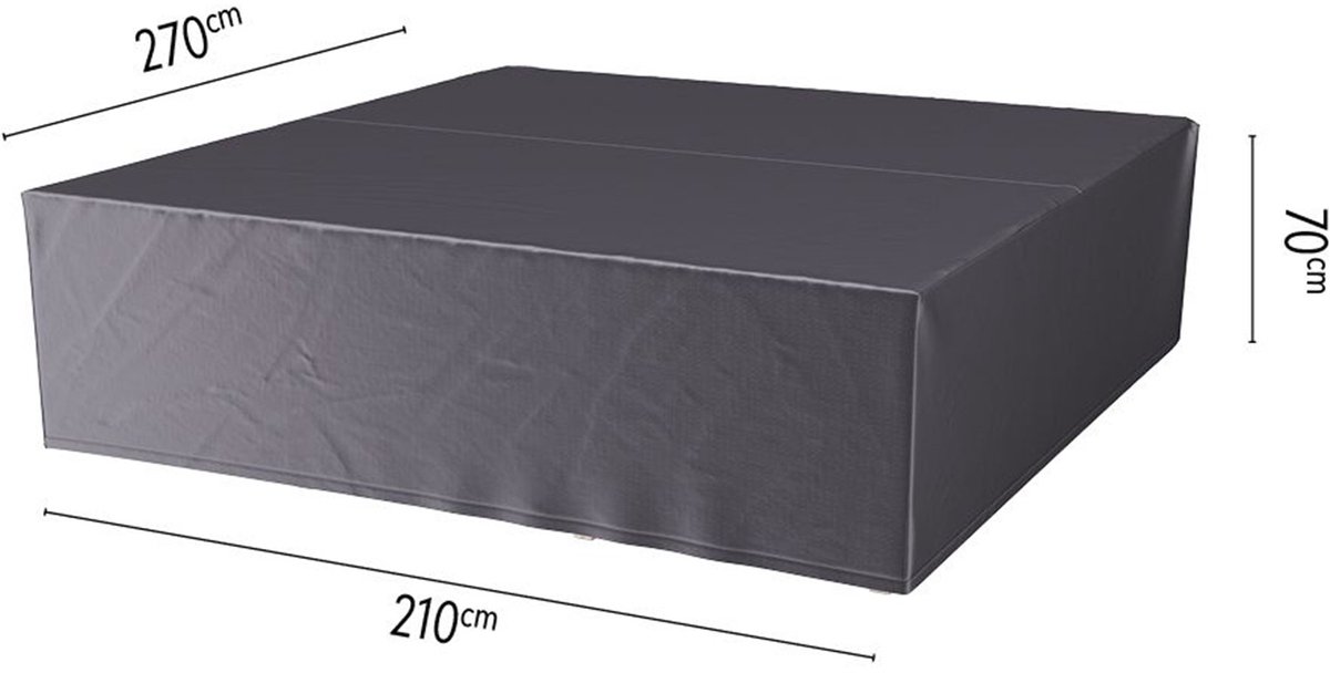 De Loungesethoes van AeroCover is speciaal ontworpen om uw loungeset te beschermen tegen alle weersomstandigheden en om schimmelvorming tegen te gaan. Met een afmeting van 270x210xH70 is deze hoes geschikt voor loungesets met meerdere elementen, hoeksets met een hoge tafel of L-vormige hoeksets die tegen elkaar worden geschoven.