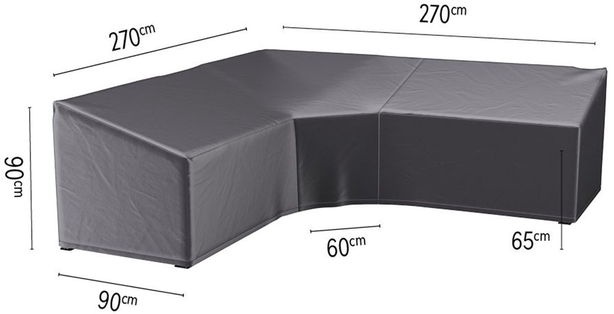 Loungesethoes hoek hoge rugleuning 270x270x90x65-90:Bescherm jouw L-vormige hoeksets met deze ademende en vorstbestendige loungesethoes. Deze hoes is speciaal ontworpen voor hoeksets met een hogere rugleuning dan armleuningen. Het is geschikt voor hoeksets met een 90 gradenhoek en grote/trapezevorm/XL hoek. Met deze loungesethoes hoef je je geen zorgen te maken over de weersinvloeden, want jouw loungeset is goed beschermd.A... lees meer over dit product
