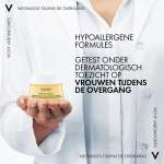 De menopauze kan een grote impact hebben op de huid, met hormonale veranderingen die leiden tot verlies van elasticiteit, dichtheid en gedefinieerde gezichtscontouren. Maar maak je geen zorgen, Vichy heeft de oplossing: de NeoVadiol Herstellende Revitaliserende Nachtcrème. Deze crème reactiveert de huidmechanismen en zorgt voor een hernieuwde dichtheid, stevigheid en gloed.