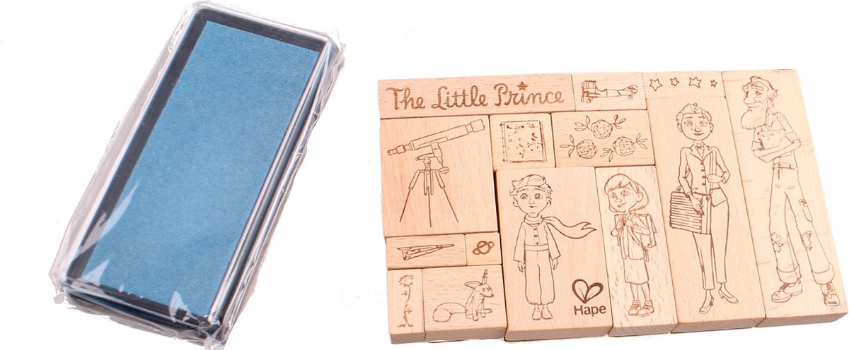 Een schattig houten set stempels van de animatieflim De Kleine Prins met karakters uit de film. Inclusief inktpad. lees meer over dit product