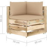 Om de levensduur van je tuinmeubelen te verlengen, raden wij je aan om ze af te dekken met een waterbestendige hoes. Dit zorgt ervoor dat je meubelen beschermd blijven tegen regen, zon en andere weersomstandigheden. De set wordt geleverd inclusief zit- en rugkussens voor extra comfort. De beige kleur van de kussens geeft een mooie contrast met het groen geïmpregneerde grenenhout.