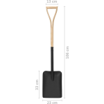 Deze essenhouten tuinspade met YD-greep is de perfecte keuze voor al jouw tuin-, landschaps- en bouwprojecten. Deze spade is ontworpen om moeiteloos stortgoederen zoals aarde, zand of sneeuw op te tillen en te verplaatsen. Met een graafkop van 23 x 33 cm en een totale lengte van 106 cm biedt deze spade de ideale afmetingen voor elke taak.