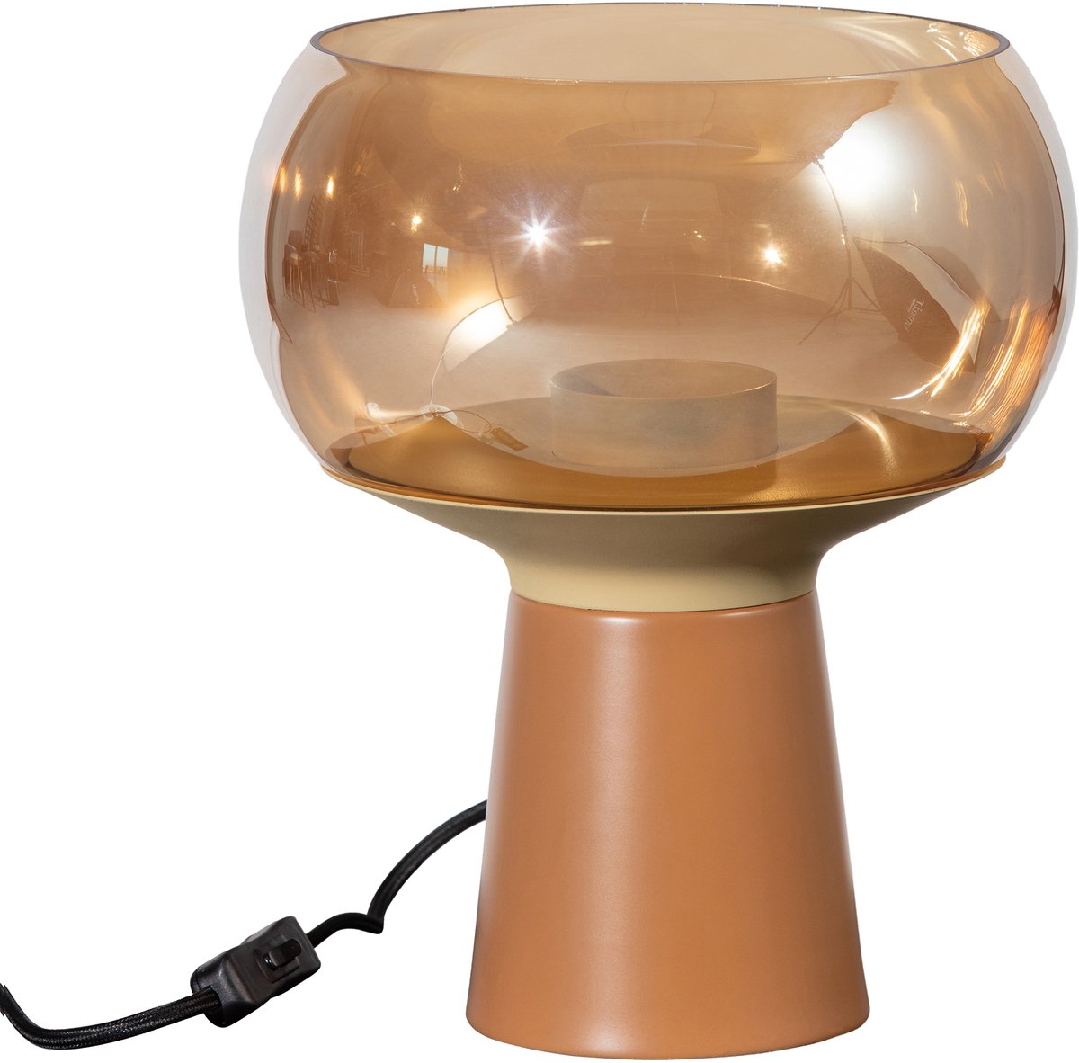 De BePureHome Mushroom tafellamp is een knipoog naar de retrostijl uit de jaren '70, maar dan met een moderne upgrade. Deze lamp combineert een champagnekleurig glazen kap met een keramieken voet in de kleur syrup. Met zijn vriendelijke uitstraling en zacht licht, verspreidt hij een warme sfeer in elke ruimte.