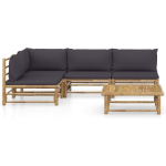 Vidaxl 5-delige Loungeset Met Donkergrijze Kussens Bamboe - Grijs