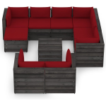 Vidaxl 10-delige Loungeset Met Kussens Geïmpregneerd Hout - Rood