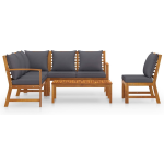 Maak van uw terras, balkon of tuin een oase van moderne elegantie met deze prachtige 5-delige loungeset. Het stijlvolle ontwerp voegt een vleugje klasse toe aan elke buitenruimte. Gemaakt met een massief acaciahouten frame, is deze set niet alleen sterk en stevig, maar ook duurzaam en weerbestendig dankzij de olieafwerking.