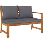 Kleur kussen: donkergrijsMateriaal: massief acaciahout met olieafwerking en stof (100% polyester)Afmetingen:- Tweezitsbank met rechter-/linkerarmleuning: 114,5 x 60,5 x 81 cm (B x D x H)- Hoekbank: 60,5 x 60,5 x 81 cm (B x D x H)- Middenbank: 54 x 60,5 x 81 cm (B x D x H)- Tafel: 100 x 50 x 33 cm (L x B x H)Zithoogte vanaf de grond: 34 cmDikte zitkussen: 8 cmDikte rugkussen: 15 cm