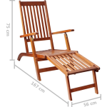 De terrasstoel heeft een prachtige olieafwerking, waardoor hij niet alleen functioneel is, maar ook een visueel hoogtepunt in je tuin vormt. Met afmetingen van 167 x 56 x 75 cm in volledig uitgeklapte toestand en 144 x 56 cm in ingeklapte toestand biedt deze stoel voldoende ruimte om comfortabel te loungen. Het kussen heeft een afmeting van 75/105 x 50 x 4 cm en zorgt voor nog meer ontspanning.