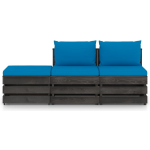 Vidaxl 3-delige Loungeset Met Kussens Geïmpregneerd Hout - Blauw