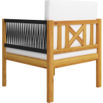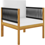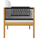 De levering bevat zit- en rugkussens met een dikke vulling, waardoor je ultiem kunt genieten van luxe en comfort. De crèmewitte kleur van de kussens past perfect bij het natuurlijke hout en creëert een stijlvolle en ontspannen sfeer.