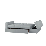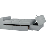Met zijn verstelbare rugleuning kan deze bank snel worden omgezet in een comfortabele slaapplaats. Daarnaast heeft de bank een neerklapbare lade met een handige bekerhouder, zodat je jouw favoriete drankje altijd bij de hand hebt. De 3 ruime opbergruimtes zorgen ervoor dat je jouw beddengoed en andere accessoires netjes kunt opbergen en uit het zicht kunt houden.