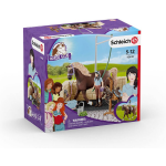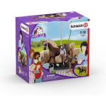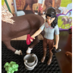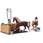 Met de paardenbox van Schleich® Horse Club kunnen kinderen spelenderwijs de wereld van paarden ontdekken. Dit moderne speelset bevat een volledig beweegbaar figuur van Emily, die zadel en hoofdstel op de zadelstandaard legt en haar prachtige Holsteiner merrie Luna vastmaakt bij de wasplaats. Met de roskam en borstel uit de poetsdoos maakt Emily de vacht van Luna schoon, terwijl de waterslang aan een beweegbare zwenkarm hangt om het paard vanuit alle hoeken goed te kunnen bereiken.