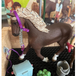 Ontdek de moderne paardenbox met Horse Club Emily en Luna van Schleich®Met de paardenbox van Schleich® Horse Club kunnen kinderen spelenderwijs de wereld van paarden ontdekken. Dit moderne speelset bevat een volledig beweegbaar figuur van Emily, die zadel en hoofdstel op de zadelstandaard legt en haar prachtige Holsteiner merrie Luna vastmaakt bij de wasplaats. Met de roskam en borstel uit de poetsdoos maakt Emily de vacht va... lees meer over dit product