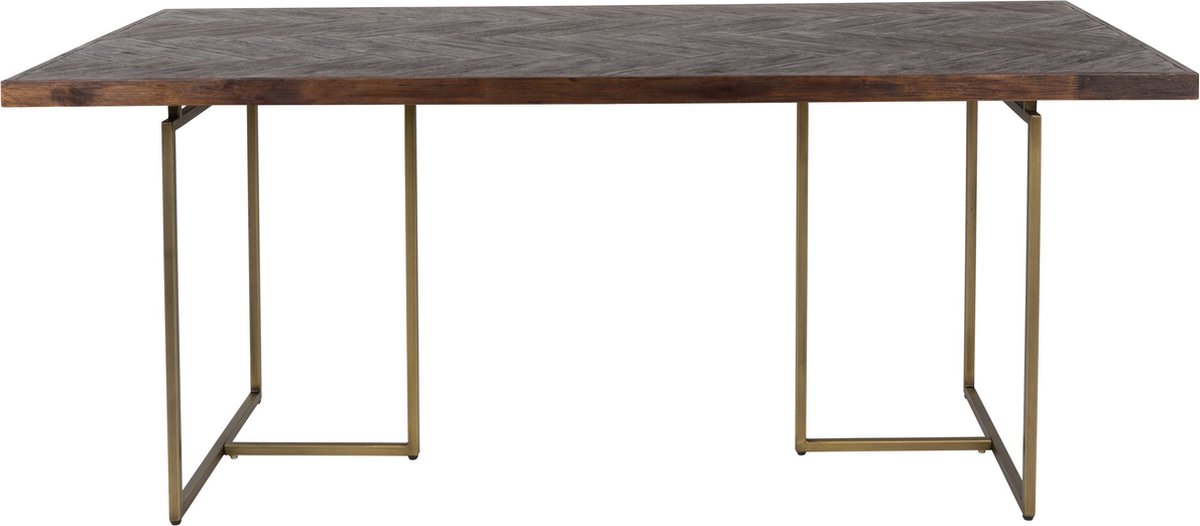 De houten eettafel Class van Dutchbone is een prachtige toevoeging aan elk interieur. Met zijn schitterende visgraat patroon in het tafelblad en het elegante metalen onderstel met antiek messing afwerking, straalt deze tafel een sophisticated charme uit. Het bijzondere tafelblad is gemaakt van Acacia fineer en afgewerkt met een PU-lak, wat zorgt voor een prachtige lichtval en steeds wisselende kleurverschillen.