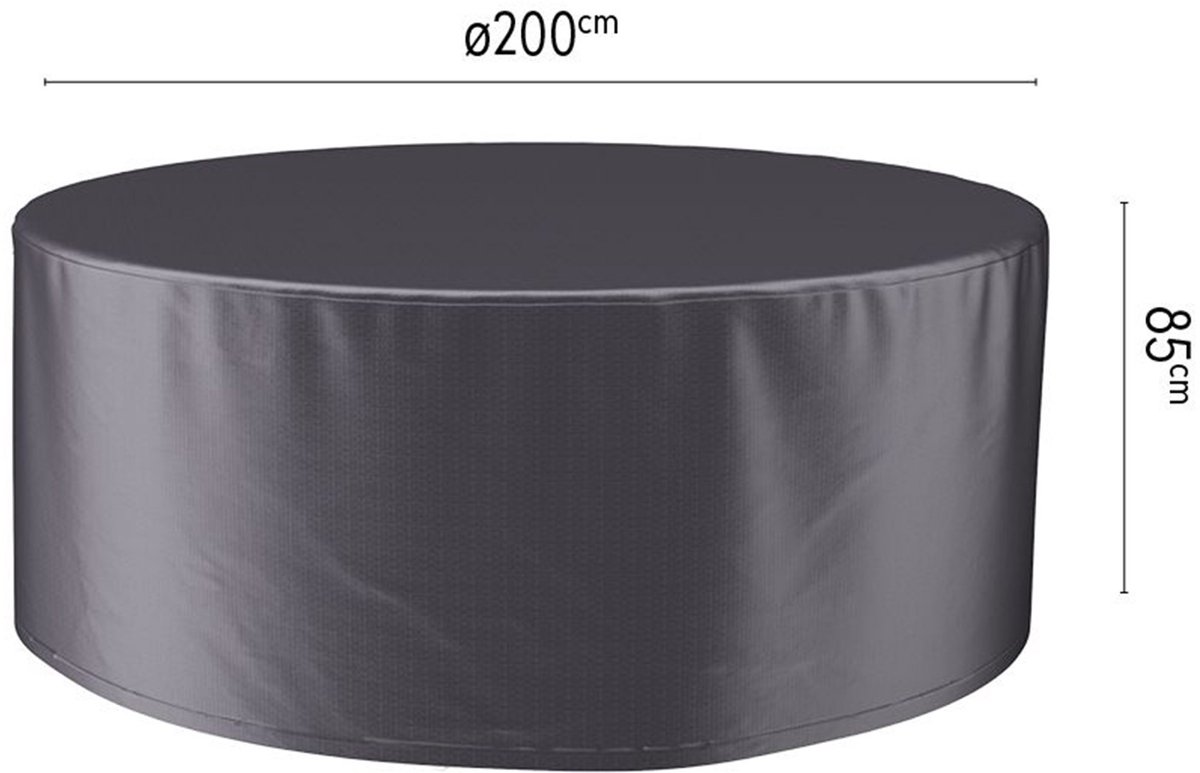 Deze tuinmeubelhoes is speciaal ontworpen voor een tafel met een diameter van 200 centimeter en inclusief stoelen. Met zijn afmetingen van 200x85cm past de hoes perfect over jouw tuinset. De elastische band zorgt ervoor dat de hoes goed op zijn plaats blijft zitten, zelfs bij harde wind.