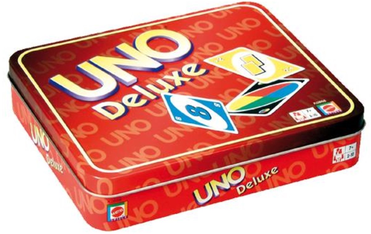 Met dit klassieke kaartspel kunnen twee tot tien spelers individueel of in teams de strijd aangaan. Het doel van het spel is om als eerste speler al je kaarten kwijt te raken. En vergeet vooral niet 'UNO' te roepen als je nog één kaart over hebt! Het spel wordt geleverd in een kleurrijk en stevig blikje waarin je het ook kan opbergen. Iedereen is dol op UNO™ kinderen, tieners en volwassenen! Makkelijk om te leren…moeilijk om mee te stoppen! Families zijn dol op het beroemde UNO™ Deluxe Kaartspel!Voor 2 tot 10 spelers.