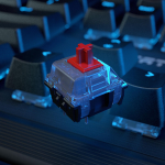 Dit toetsenbord maakt gebruik van rode mechanische switches, die lineair aanvoelen. Dit betekent dat de toetsen minder kracht nodig hebben om in te drukken, waardoor je snellere reactietijden kunt bereiken. Bovendien hebben de rode switches geen voelbaar of hoorbaar actuatiepunt, waardoor ze ideaal zijn voor gamers die snel moeten reageren en langdurig moeten indrukken.