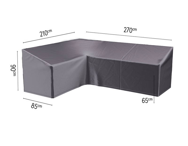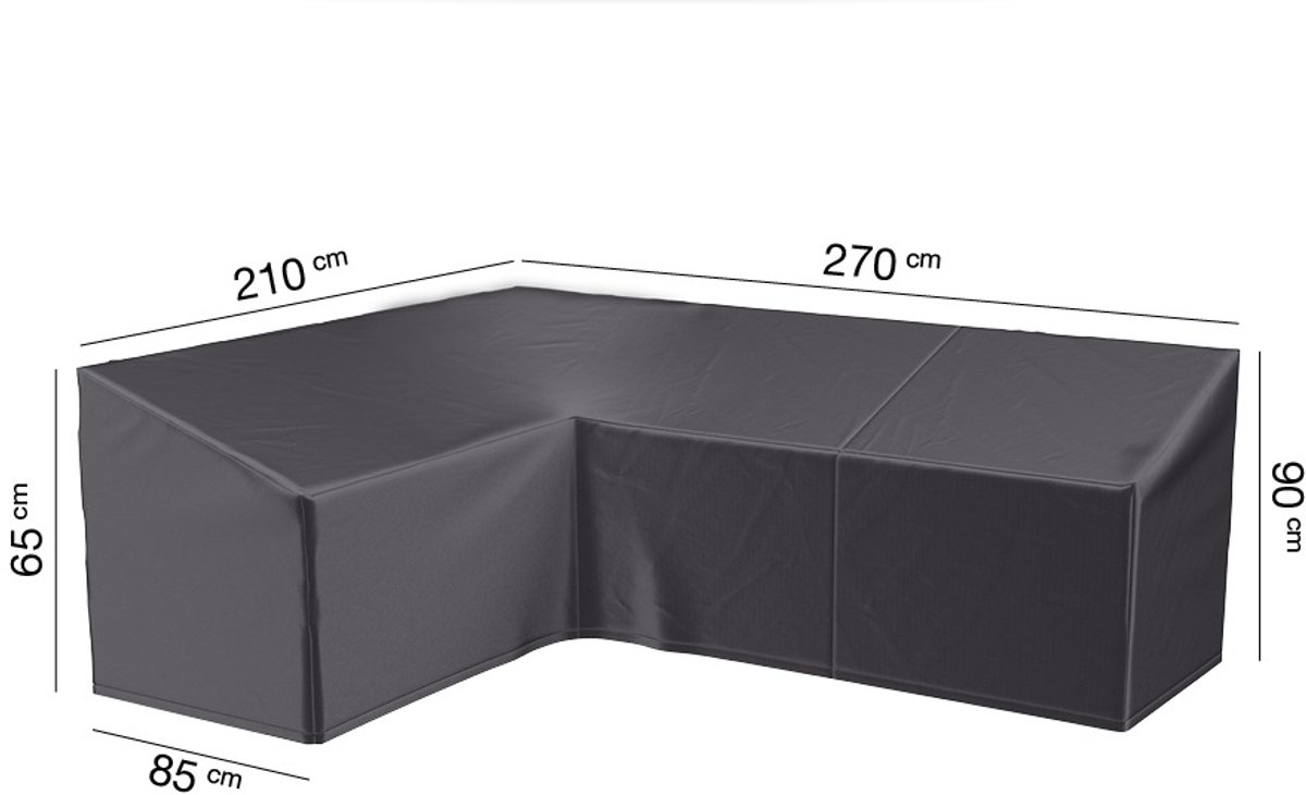 Loungesethoes hoek hoge rugleuning 270x210x85x65-90Bescherm uw L-vormige hoekset met deze ademende en vorstbestendige loungesethoes met 90 gradenhoek. De rugleuning van deze hoes is hoger dan de armleuning. Let op: Deze hoezen zijn niet 100% waterdicht en UV-bestendig, dus gebruik ze op de juiste manier om de beste resultaten te behalen. Houd er rekening mee dat bij onjuist gebruik geen garantie wordt verleend.Deze loungese... lees meer over dit product