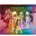 Laat de regenboog deze fantastische winter kleuren! De Rainbow High modepoppen krijgen een winterse make-over zodat ze modieus de piste op kunnen met hun vrienden. De Rainbow High - Winter Break Ruby Anderson pop heeft haar eigen unieke stijl die tot uiting komt in haar twee winterse poppenoutfits in haar lievelingskleur rood plus wintersportuitrusting-poppenaccessoires, zoals een beanie met lovertjes, donsjack, kunstschaatsen, winterlaarzen en snowboard met echt werkende bindingen. Voor eindeloos fantasierijk, creatief vertelplezier met deze speelset. Verzamel de regenboog!