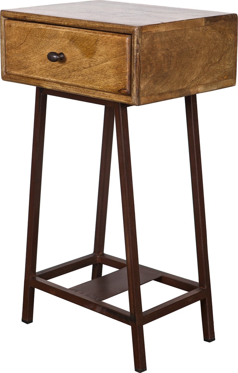 Vintage houten sidetable met ladeDeze vintage houten sidetable is een absolute must-have voor elke woning. Met zijn unieke uitstraling en hoogwaardige afwerking zal deze sidetable direct de aandacht trekken. Gemaakt van gelakt mangohout en voorzien van een metalen onderstel, straalt deze tafel zowel elegantie als robuustheid uit.De handige lade biedt voldoende opbergruimte voor kleine voorwerpen, zoals sleutels. De binnenmat... lees meer over dit product