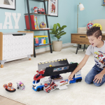 Met slechts een simpele druk op de knop aan de zijkant van de PAW Patrol bus ondergaat deze een epische transformatie. De zijpanelen klappen omhoog en onthullen dubbele voertuiglanceerinrichtingen! Trek aan de hendel van de PAW Patrol vrachtwagen om de lanceerinrichtingen te positioneren en druk op de lanceerknoppen om de voertuigen met volle snelheid naar de reddingsactie te laten schieten. Als kers op de taart kun je de geluidseffecten rechtstreeks uit de serie horen door op de knop bovenop de vrachtwagen te drukken!