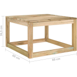 Maak van je buitenruimte een oase van comfort en stijl met deze houten tuinset. Geniet van de rustieke charme die het palletontwerp biedt en transformeer je tuin of terras tot een uitnodigende plek om te ontspannen. Laat jezelf onderdompelen in de natuur, omringd door het warme gevoel van groen geïmpregneerd grenenhout.