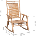 Met zijn afmetingen van 66 x 86 x 105 cm (B x D x H) biedt de bamboe schommelstoel een ruime zitplaats voor urenlang ontspannen. De breedte van de zitting is 55 cm en de diepte is 53,5 cm, waardoor er voldoende ruimte is om comfortabel te zitten. De zithoogte vanaf de grond is 37 cm en de hoogte van de armleuning vanaf de grond is 55 cm, wat zorgt voor een ergonomische en ontspannende houding.