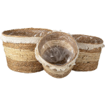 Opbergmanden Set van 3 Mand Planthouder Meerkleurig Stro