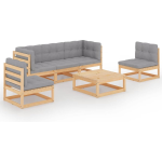 Vidaxl 6-delige Loungeset Met Kussens Massief Grenenhout - Grijs