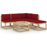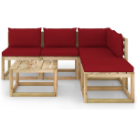 Vidaxl 6-delige Loungeset Met Wijnrode Kussens - Rood