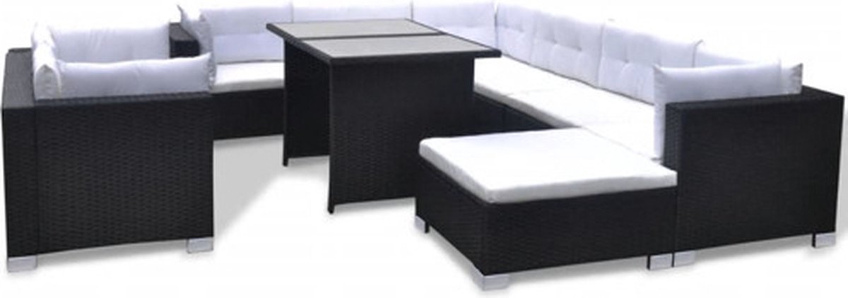 Vidaxl 10-delige Loungeset Met Kussens Poly Rattan - Zwart