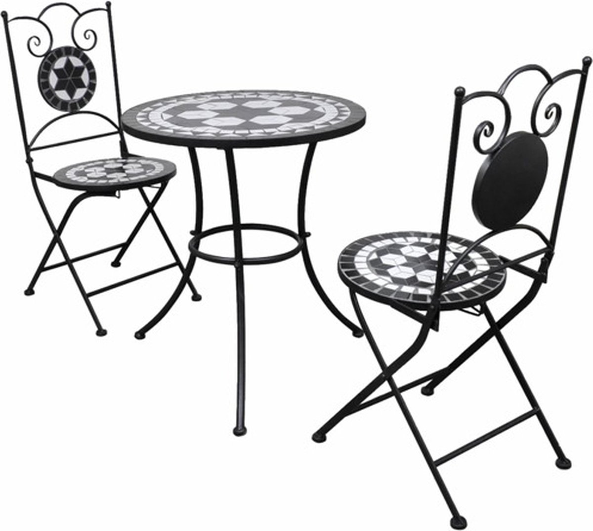 Vidaxl 3-delige Bistroset Keramische Tegel En Wit - Zwart