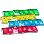 De Able 2 Weekbox assorti is een handige pillendoos met vakjes voor elke dag van de week. Met zijn Nederlandse tekst en duidelijke indeling is het een essentieel hulpmiddel voor het bewaren van uw medicijnen. Elke dag heeft zijn eigen compartiment, zodat u uw medicatie gemakkelijk kunt scheiden en snel de juiste dosis kunt vinden. Let op: de kleur kan variëren van de afbeelding, maar de functionaliteit blijft altijd hetzelfde.