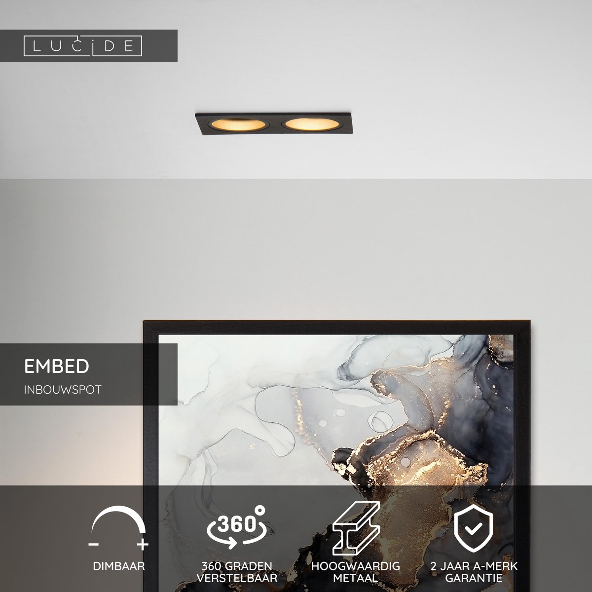 Een vooruitstrevende rechthoekige inbouwspot. Dat is deze Embed. De spot is gemaakt uit hoogwaardig aluminium en afgewerkt met een matte zwarte lak. In combinatie met een wit interieur voeg je met deze inbouwspot extra charme toe aan je interieur. Mogelijkheden heb je te over. De spot kan je volledig draaien en kantelen. Kwestie van precies de details uit te lichten die jij belangrijk vindt. Deze moderne inbouwspot met GU10-fi... lees meer over dit product