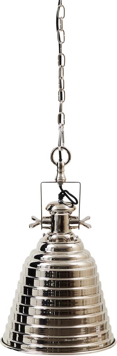De Birmingham hanglamp is een moderne lamp die strak is afgewerkt in zilverkleurig aluminium. De lampenkap heeft horizontale ringen die het geheel een speels accent geven. Aan de lamp is een zilverkleurige schakelketting bevestigt, waarmee u de lamp ophangt. De lamp is 63 centimeter hoog en heeft een diameter van 33 centimeter.