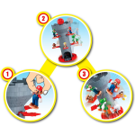 Houd Super Mario, Luigi en hun vrienden veilig met de nieuwe Blow Up! Wankele Toren. Rol de dobbelstenen, plaats het personage op het platform van de toren en wees voorzichtig! Elk figuur heeft een ander gewicht en beïnvloedt de beweging van de toren. Pas op dat je Bowser niet wakker maakt, anders vliegen alle personages door de lucht en valt de bal! Deze set bevat een toren met platforms, dobbelstenen, een gegraveerde bal en 7 exclusieve Super Mario-figuren.