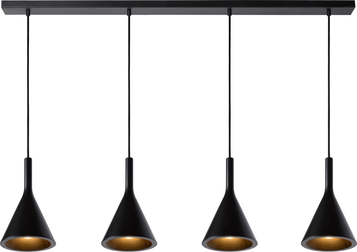 Vier op een rij. Dat is deze Gipsy. De strakke vormgeving van deze hanglamp is een ideale metgezel voor in een modern of landelijk interieur. De pure vormen zorgen ervoor dat elke omgeving de focus krijgt die het verdient. Of dat nu boven de eettafel is of als hanglamp boven je salontafel. De strak vormgegeven pendels zijn in de hoogte verstelbaar door eigenhandig het snoer in te korten. De betonlook van de lampenkappen maken ... lees meer over dit product