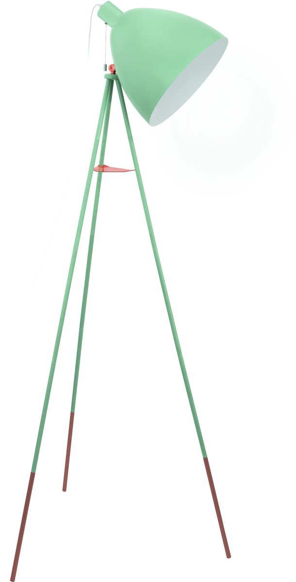 De Dundee vloerlamp in muntgroen voegt een vleugje retro-charme toe aan elke ruimte. Het statiefframe met delicate koperkleurige details en het metalen lampenkapje in mintgroen zorgen voor een unieke uitstraling. De binnenkant van de kap is wit geschilderd om het licht optimaal te reflecteren. Bovendien kan de kap van de Dundee vloerlamp in verschillende hoeken worden versteld, waardoor je de lichtinval naar wens kunt aanpassen. Met de handige trekschakelaar op de lampenkap is het in- en uitschakelen van het licht een fluitje van een cent.