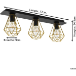 Met afmetingen van H 24,5 x L 77 x B 17,5 cm is deze lamp een hippe toevoeging aan jouw interieur. De EGLO Tarbes Plafondlamp maakt gebruik van een E27 lichtbron van maximaal 3X40W (exclusief). Daarnaast is de lamp eenvoudig aan te sluiten op een dimmer (exclusief) of te dimmen met dimbare of slimme lichtbronnen van EGLO. Bedienbaar via een aan/uit schakelaar, biedt deze lamp alle gemakken die je zoekt.