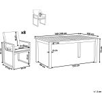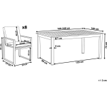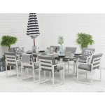 Dankzij de vele functies van deze tuinset kan je hem niet alleen buiten in de tuin gebruiken, maar ook binnen in de woonkamer plaatsen. De set wordt geleverd met 8 comfortabele stoelen die voldoende ruimte bieden voor jouw vrienden en familie om gezellig samen te genieten van de maaltijd. Of het nu gaat om een tuinfeest of een intiem diner, deze tuinset past zich moeiteloos aan aan elke gelegenheid.